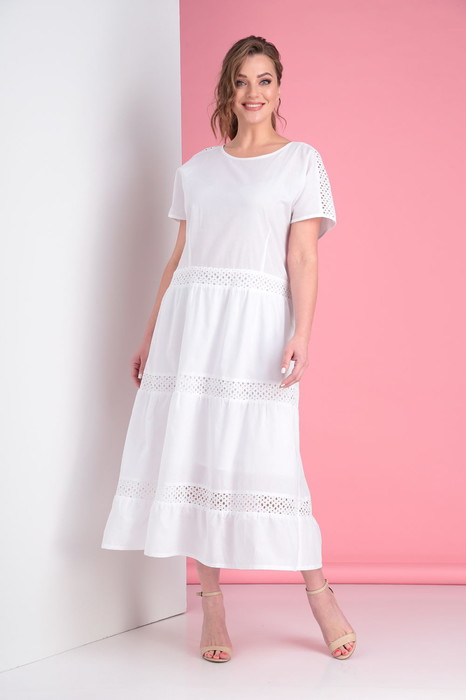 Раскошное женское платье из лёгкого хлопка, с элементами кружевного декора. Изделие на х/б подкладке.