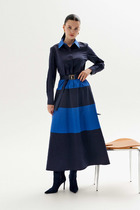 Яркий образ женского платья будет привлекать внимание окружающих.По спинке изделия застёжка-молния и разрез. По переду полукруглый вырез горловины,рельефные линии от проймы. Действующие карманы . Необычный рукав даёт свободу движения. Платье на любой сезон.