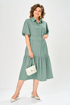 Элегантное женское палтье из костюмной ткани необычного кроя станет изюминкой вашего гардероба. Платье полуприлегающего силуэта, отрезное по линии талии со спущенным плечом. Рукав 3/4 длиный на отрезной манжете. По полочке идут защипы-складки в верхней и нижней частях, запах - на петли и пуговицы по подрезу. По нижней части платья запах идет в виде складки. По спинке кокетка со складкой, по подрезу вставлена резинка. Юбка-полусолнце с односторонними складками по полочке, по бокам карманы. По горловине воротник на отрезной стойке. Платье будет идеально смотреться с туфлями, ботинкаи и сапогами. Длина по спинке: 117см. Длина рукава с манжето 29см.