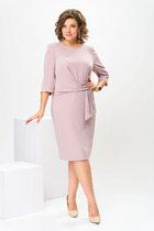 Платье прямого силуэта, длиной за колено, выполнено из вельвета в мелкий рубчик. Полочка платья с отрезной планкой по центру и застежкой на петли и пуговицы. Лиф платья отрезной , со складкой по низу, к срезу которой притачана юбка со сборкой. Полочка лифа с нагрудными вытачками и накладными карманами. Горловина круглой формы обработана воротником-стойкой. Пройма углубленной формы с рукавом рубашечного типа, рукав длинный, одношовный. В боковых швах юбки обработаны карманы.