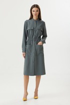 Платье женское, приталенное, длина до колена. На подкладке. Рукав втачной, длинный, на запястьи резинка. V-образный вырез по переду горловины. Платье резное под грудью, по талии и по линии бедра, декорированно рюшами.
