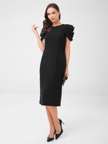 Платье прямого силуэта, зауженное по талии, длиной до середины голени, с потайной застёжкой молнией по спинке. Длинный рукав. По переду разрез, который придаст вашему образу игривости. Платье со съёмным поясом, при помощи которого можно создавать различные образы давая волю фантазии. Платье будет актуально, как и для повседневной носки, так и для торжеств.