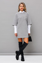 Платье приталенного кроя выполнено из трикотажного полотна черного цвета с удлиненными рукавами. Характеристики: приталенный силуэт, горловина круглая, застежка потойная молния по спинке изделия, рукав втачной, удлиненный, строенные плечики. Длина по спинке 81 см, длина рукава 126 см.