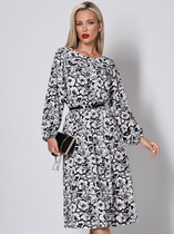Платье в длине мини, выполнено из эластичного гипюра, обработано трикотажной эластичной подкладкой телесного цвета. Лиф отрезной по т линии талии. Обработаны чашки. Верх рукава собран на резинку. Рукав прямой до линии локтевого сгиба, имеет притачную деталь в форме клеша. Застежка - потаная молния в боковом шве. Юбка широкая по форме полукруг.