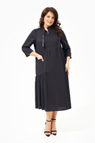 Платье женское летнее из тонкой хлопковой ткани, с коротким рукавом, с полукруглым вырезом горловины и застежкой по спинке на пуговицу, с воланами, свободное, расширенное к низу, с карманами в боковых швах. Без подкладки.