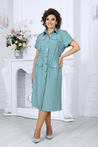 Женское платье полуприлегающего силуэта выполнено из трикотажного полотна с оригинальным дизайном.Перед с отрезными бочками от проймы до бокового шва ,в шве выполнены карманы.Спинка с талиевыми вытачками ,со средним швом, застёжкой на декоративную тесьму-молнию и разрезом.Рукава втачные длинные двухшовные.Платье укомплектовано ремнем из искусственной кожи.