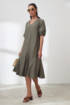 Платье свободного силуэта с отложным воротником на планке с застёжкой на петли пуговицы. Платье на планке и застёжкой на петли-пуговицы. В боковых швах крманы, для Вашего удобства.