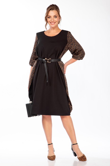 Платье женское свободного силуэта, двухцветное, рукав втачной на резинке, горловина круглая с застежкой на петлю по спинке в среднем шве. По бокам внизу резинка.