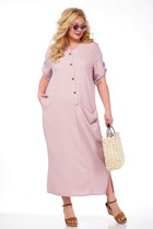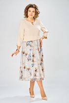 Платье женское,нарядное,свободного силуэта, А-образной формы. Выполнено из двух разных тканей с центральным швом по переду, рукав втачной 3/4 с манжетом- завязкой. Платье на подкладке.