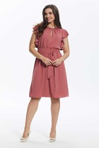 Платье женское свободного силуэта,выполнено из шифона, с цельнокройным рукавом ,на трикотажной подкладке,отрезное по линии талии,полочка переда украшена нашивной аппликацией.