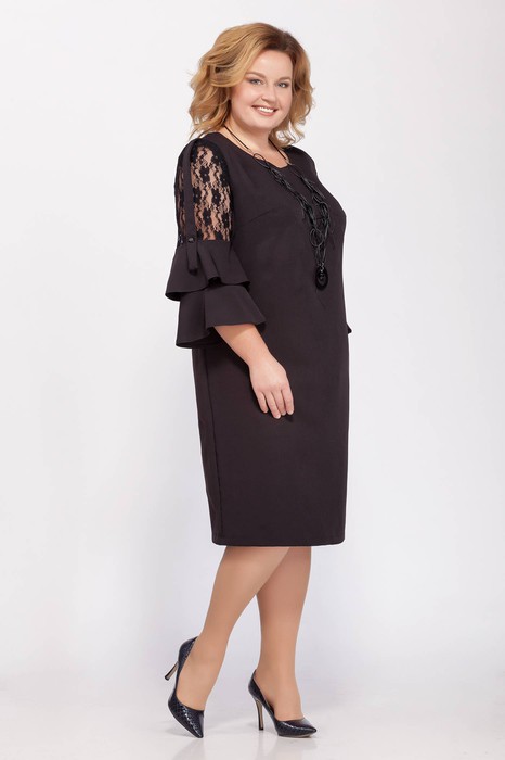 Платье женское полуприлегающего силуэта. Рукав кружевной с воланами и патай