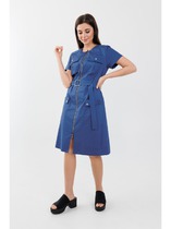 Платье-миди А-силуэта с асимметричными вставками. Диагональная линия, делящая платье, создает интересную композицию, визуально вытягивают фигуру, делая ее более стройной и пропорциональной. Принт "гусиная лапка" располагается диагонально на лифе слева и переходит на юбку справа, создавая эффект "сдвига" и визуальной динамики. Горловина округлой формы, рукава длинные, втачные. На концах имеют легкую сборку, что добавляет романтичности. Юбка, с боковыми карманами и плавным расширением к низу, обеспечивающим комфорт и свободу движения.