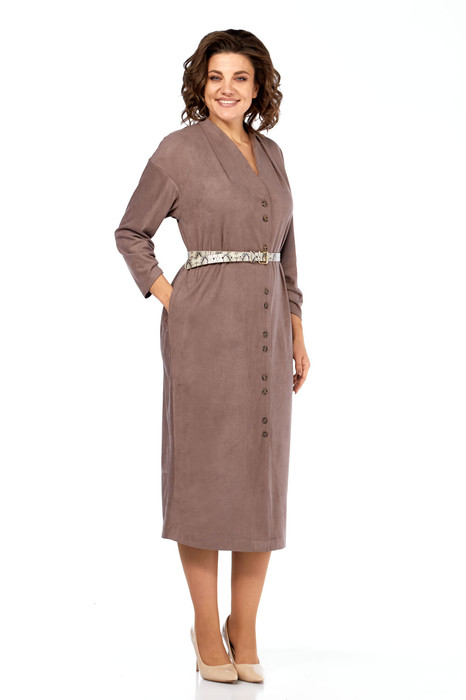 Платье женское поплуприлегающего силуэта с застежкой на петли и пуговицы. Спинка со средним швом. Полочка с мягкой складкой у горловины. Боковые карманы обработаны в швах с частично настроченной мешковиной. Рукав со спушенной линией плеча, втачной, одношовный с 3-мя мягкими складками снизу. Воротник-стойка цельнокройная с полочкой. В комплекте ремень из эко-кожи. Фурнитура может отличаться от заявленной на фото.