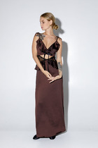 Платье из трикотажного полотна прилегающего силуэта. Ассиметричный вырез горловины в виде капли, обработан дополнительно трикотажной подкладкой до линии талии. Потайная молния вставлена в среднем шве спинки, сзади обработана шлица.