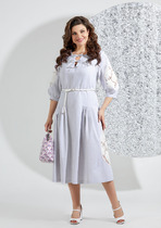 Глубокий вырез на спинке фиксируется декоративной цепочкой, создавая изящный акцент и добавляя изюминку к дизайну. Рукава втачные, одношовные, обеспечивающие комфорт и аккуратность линий. Это платье идеально подойдет для тех, кто ценит стиль, комфорт и уникальный дизайн в повседневном или особом образе.