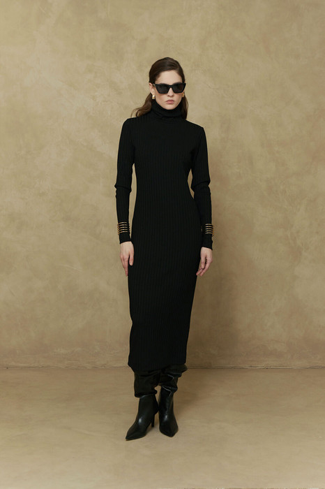 Платье женское трикотажное, прямого силуэта. Рукав втачной, одношовный. Воротник «стойка».