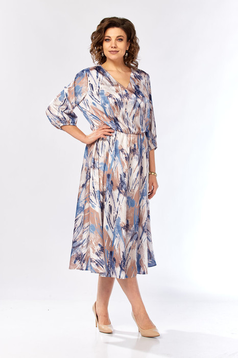 Платье Элль стиль 2462 бежево-голубой принт