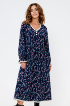 Женственное платье приталенного силуэта выполнено из креп-шифона. Округлая горловина на внутренней обтачке. Длинный втачной рукав присобран на эластичную резинку. Модель отрезная по линии талии, присобрана на резинку. Юбка на подкладке. Низ ровный, без разрезов.
