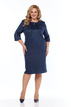 Платье женское приталенного силуэта, ассиметричного кроя выполнено из сочетания бархатной ткани (велюр) и трикотажного полотна с люрексом.  По переду изделия расположены рельефы и декоративная вставка из люрекса. Вырез горловины -фигурный ассиметричный, рукав втачной 3/4. Спинка платья с таллиевыми выточками и потайной молнией.