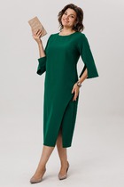 Платье женское повседневное полуприлегающего силуэта с фигурным низом расширенное к низу, выполнено из хлопка( плотный) Вырез горловины воротник « стойка», рукав втачной на манжете 7/8 по низу на притачной манжете собран на сборку. В рукаве отделочная пата которой можно регулировать длину рукава и делать короче, что добавляет изысконности изделию. В боковых швах обработаны карманы и разрезы, что дает возможность дополнительного коморта . По переду застежка до талии на обметанные петли и три отделочных пуговицы, по спинке фигурная кокетка и встречная складка. Это придает особый стиль и шарм изделию. Платье расширено к низу за счет складок по переду. Декором служит отделочная нашивка по спинке и декоративные пуговицы по переду и рукавам.