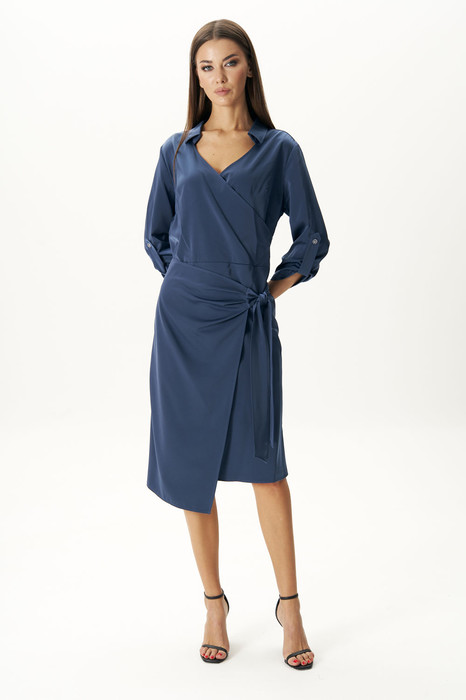 Модель – идеальная для торжественного выхода, да и в принципе для повседневного лука. Конечно же это платье – рубашка с запахом! Оно подходит всем типам фигуры. Лаконичное, но с изюминкой в крое, матовый плотный сатин придает модели пластичность и изысканность. Свободный упрямленный покрой, рубашечный рукав, воротник на V-образном вырезе.