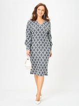 Свободный А-силуэт, покрой с заниженной линией плеча, длина макси. Полочка с эффектным вырезом и авторскими сложными буфами. Спинка - со средним швом.
