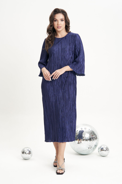 За последние годы мода превратилась в абсолютно свободное пространство, где в трендах, наравне друг с другом зачастую оказываются самые противоречивые тенденции стилистические приемы. Один из ярких примеров-длина миди и фактурное гофрированное полотно. Сам материал уже предполагает минимализм кроя. Свободный упрямленный силуэт, втачной рукав длины 7/8, круглая горловина и акцентная капля на спинке. Цвет и фактура полотна делает образ запоминающимся и эффектным.