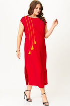 Женское трикотажное платье "Веста" выполнено из трикотажной ткани. Платье без подкладки, прямого силуэта со съемным поясом. По спинке и полочке - притачные кокетки. По центру рукава - шов. Горловина платья обработана обтачкой, на плочке пришита декоративная нашивка, по бокам - разрезы. Низ рукава и низ платья обработаны распошивалкой.
