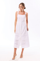Женское летнее платье свободного силуэта на бретелях с резинками. Платье выполнено из натуральной ткани, которая не просвечивается.