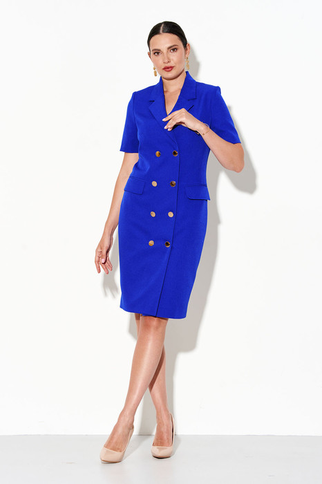 Женское классическое двубортное платье на хлопковой подкладке (идеально подходит для жаркой погоды, приятная к телу). Платье полуприлегающего силуэта со втачными рукавами и пиджачным воротником, по переду прорезные функциональные карманы, застежка на петли и пуговицы.