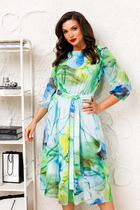 Классическое женское платье полуприлегающего силуэта выполнено из плательной ткани с содержанием вискозы. По переду небольшой декоративный разрез; вырез горловины круглой формы; рукава со спущенной линией плеча; по спинке застёжка на молнию. В комлекте съёмный пояс из основной ткани. Платье полностью соответствует заявленному размеру. Пожалуйста, пользуйтесь таблицей обмеров готового изделия.