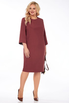 Платье прямого силуэта с воротником поло. Рукав втачной одношовный. По низу изделия, по низу рукава и по воротнику проложена отделочная строчка. Длина платья - 97 см, длина рукава - 30 см