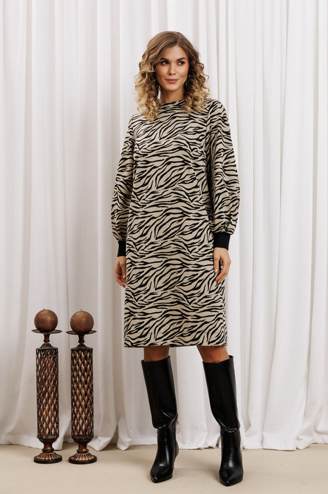 Платье Gizart 7385/1 бежево-черный тигр
