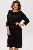 Платье с застежкой на потайную молнию в среднем шве спинки, без воротника, без рукавов, с круглым вырезом горловины. Платье отрезное по линии талии. Шов по талии присборен. Лиф переда с нагрудными и талиевыми вытачками. Спинка со средним швом, талиевыми вытачками. В боковых швах расположены карманы.