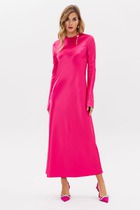 Платье без застежки, без воротника, с V-образным вырезом горловины. Перед цельный, спинка со средним швом, заканчивающимся шлицей. Рукав втачной, длинный. Платье со съемным поясом из кожезаменителя.