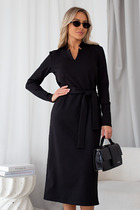Платье с центральной застежкой на петли и пуговицы, на широких бретелях. Платье отрезное по линии талии. Верхняя часть переда с талиевыми вытачками, нижняя часть переда с карманами и односторонними складками по талии. Нижняя деталь спинки с талиевыми вытачками. Платье со съемным поясом.