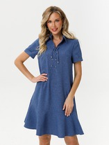 Вязаное платье прямого покроя полуприлегающего силуэта длиной до середины бедра (про росте 170 и Ог и Об соответствующих по ГОСТ 17522-72). Рукав втачной прямого покроя стандартной длины. Линия плеча немного спущенная. Вырез горловины круглый с имитацией "поло" без застёжки и широким отложным воротником.