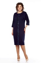 Элегантное женское платье полуприлегающего силуэта, классической длины, отрезное по линии талии со сборкой, изготовлено из хлопковой джинсовой ткани. Горловина оформлена рубашечным воротником со стойкой, центральная потайная  застежка планки на петли-пуговицы. Перед изделия с рельефами в верхней части и боковыми карманами по юбке, спинка с талиевыми вытачками. Рукава с цельнокроенным манжетом и декоративными пуговицами контрастного цвета. Можно снять пуговицы и ширина рукава по низу увеличится на 3см. В комплекте идет пояс из основной ткани. Платье будет комфортно для любого типа фигуры. Длина рукава – 46см, длина изделия – 103см.