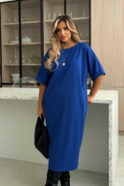 Платье- рубашка свободного силуэта, комбинированно из двух тканей. Вырез горловины рубашечного типа, застежка на петли и пуговицы по переду. В боковых швах карманы, по переду кокетка и клапаны. В комплекте ремень из основной ткани. Рукав длинный на манжете внизу.