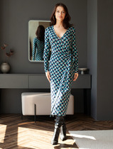 Vilatte Платье на запАх из трикотажной вискозы с эластаном D42.226 сине-зеленый
