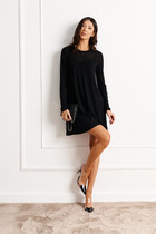 Платье женское полуприлегающего силуэта, по спинке застежка-молния; по низу рукавов декоративные бусины - жемчуг.