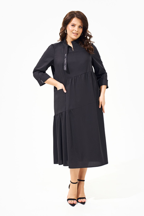 Платье женское выполнено из хлопкового поплина. Платье свободного силуэта с отрезными  воланами и ассиметричной сборкой по ним, рукава втачные с мягкой сборкой вверху рукава и манжетой по низу, по переду - функциональная потайная молния и  накладной карман, воротник-стойка и манжеты  дополнены декоративной тесьмой. Платье соответствует размеру. Пожалуйста, пользуйтесь таблицей измерений готового изделия.