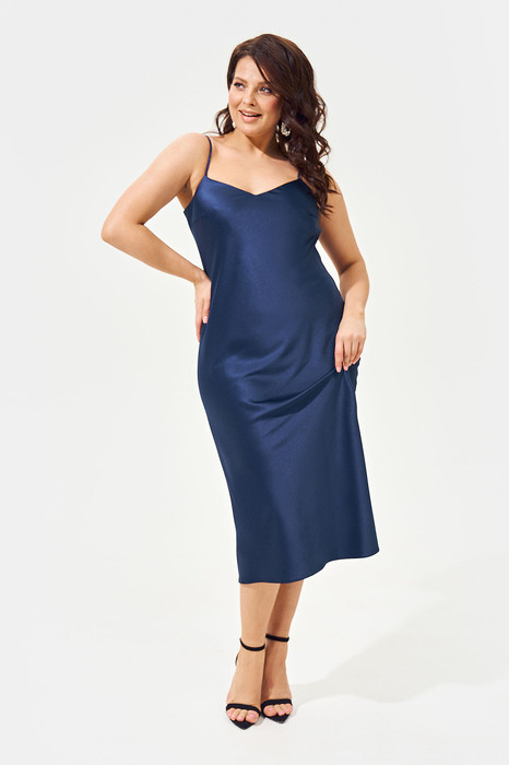 Женское шелковое платье-комбинация на регулируемых бретелях длины миди. Платье выполнено "по косой" из плотного, держащего форму шелк-сатина без подкладки. В бокой шов вшита потайная молния.