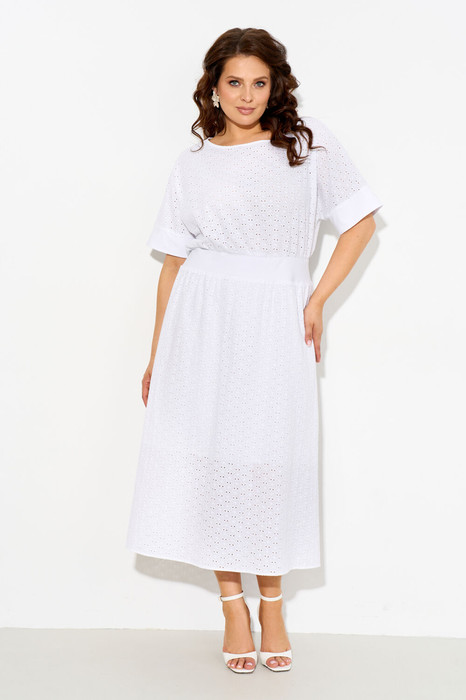 Женское платье свободного силуэта на подкладке выполнено из натуральной хлопковой ткани решелье. Платье с цельнокроеными рукавами, отрезное по линии талии, по спинке вставка из вискозы полностью на резинке, юбка платья на хлопковой подкладке, застежка по спинке на петлю и пуговицу. Платье полностью соответсвует заявленному размеру. Пользуйтесь таблицей замеров готового изделия.