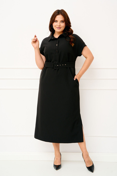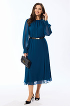 Платье женское полуприлегающего силуэта выполнено из плательной ткани. Рукава цельнокроенные со вставкой из шифона  в тон основной ткани; по переду функциональная планка-застежка на кнопки; воротник рубашечный; в боковых швах карманы; в комлекте съемный пояс из основной ткани. Платье полностью соответствует заявленному размеру. Пожалуйста, пользуйтесь таблицей замеров готового изделия.