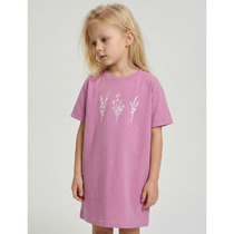 Платье А-образного силуэта, с длинными втачными рукавами на манжетах. Изделие выполнено из полотен контрастных цветов, полочка имеет вставку на которой выполнен принт, рукава с широким настрочным лампасом. Горловина круглая и оформлена воротом-трубой.