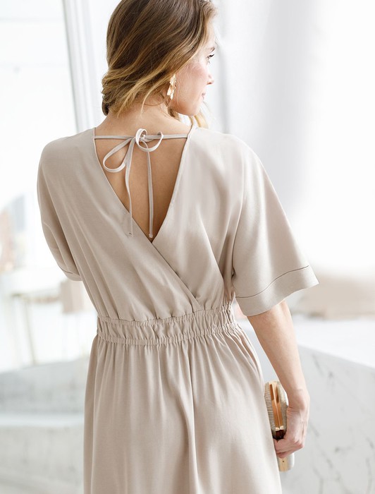 Платье из плотного лиоцелла с поясом на резинке