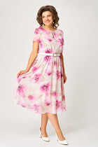 Платье женское прямого силуэта, выполнено из трикотажного полотна. Горловина обработана воротником стойкой, застежка планка на петли и пуговицы. В боковых швах обработаны карманы, по низу шлицы. Рукава спущенные, длинные внизу на манжетах.