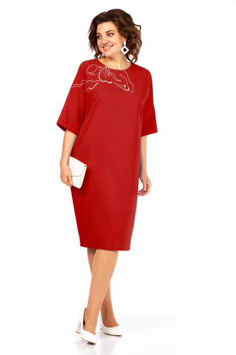 Платье женское, нарядное свободного силуэта. Выполнено из ткани костюмно-плательного ассортимента. Горловина округлой формы. Перед цельнокроеный дополнен дизайнерской вышивкой. Спинка со средним швом в котором обработана застежка на навесную петлю и пуговицу. Рукав спущенный.