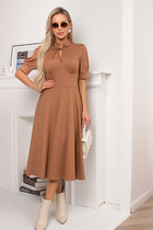 Стильное платье в спортивном стиле для самых модных девушек! Силуэт – трапеция. Воротник – стойка, отложные лацканы заострённой формы, застёжка центральная бортовая на три петли-пуговицы. Отрезное по талии. Верхняя часть спинки с притачной кокеткой. По спинке – талевые вытачки. По среднему шву переда – разрез. Фигурные боковые карманы. Длина платья по спинке от горловины до низа 103 см. Рукав – втачной, одношовный, с притачной манжетой, высотой 5 см, на функциональную застёжку на петли – пуговицы. Длина рукава с манжетой – 63 см. Завязывающийся пояс подчёркивает талию. Цвет платья может отличаться на полутон от заявленного на фото.